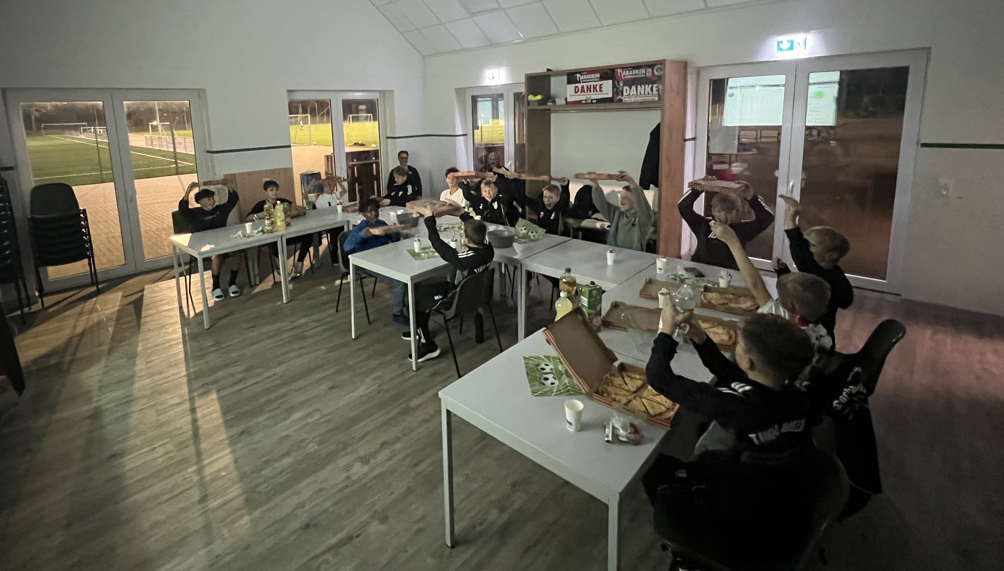 Letzten Freitag war wieder einer dieser ganz besonderen Tage: Nachdem unsere D1 mit einem Sieg die Tabellenspitze zurückeroberte, war klar: Jetzt wird gefeiert! Denn wer Woche für Woche alles gibt, wer bei Wind und Wetter trainiert, sich gegenseitig pusht und niemals aufgibt – der hat sich auch einen Abend voller Spaß, Pizza und Gemeinschaft verdient.