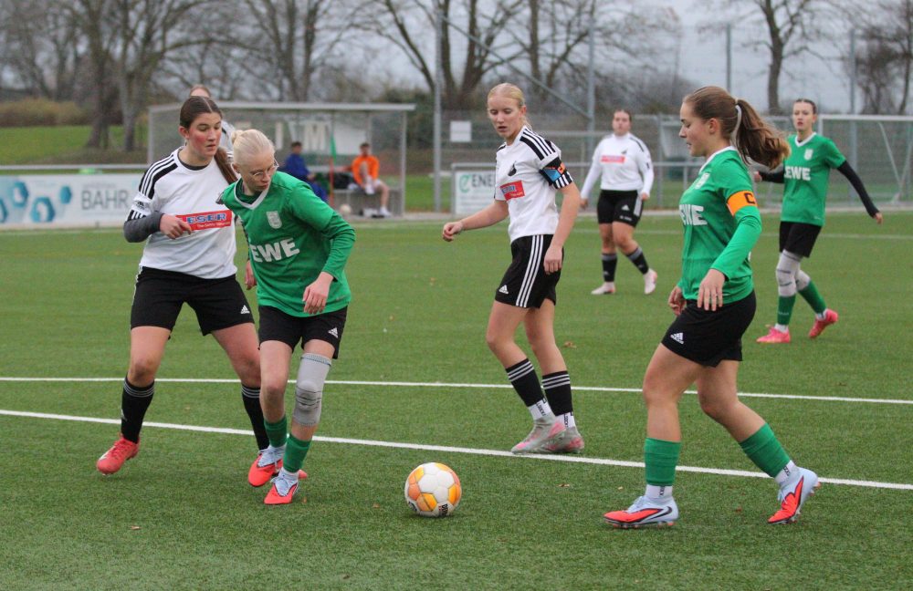 Nach der Halbzeit machten wir genau da weiter, wo wir aufgehört hatten. Wir kombinierten gut und konnten infolgedessen in der 41.,43., und 45. Minute durch Clara (2) und Leya auf 6:0 erhöhen. Wir blieben weiter dran und konnten durch 3 weitere Treffer von Maja den 9:0 Endstand markieren. Wir bedanken uns bei SG Holstein für das faire Spiel.