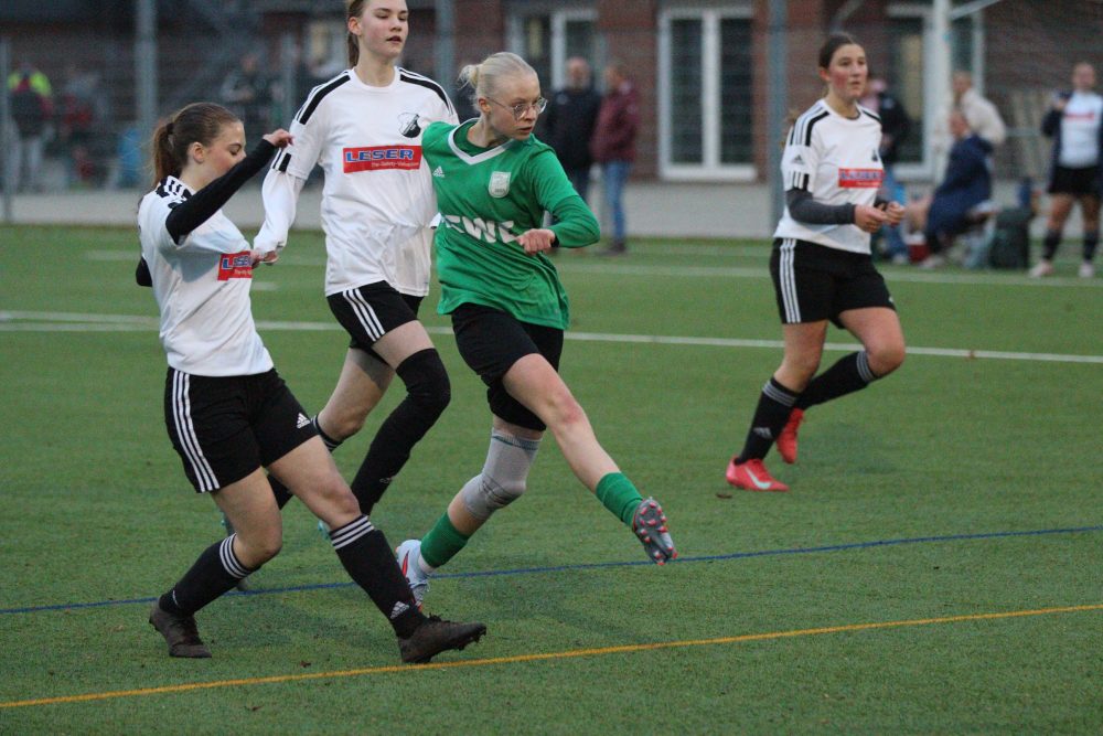 Am Sonntagabend empfingen wir die SG aus Holstein. Wir kamen nach kurzem Abtasten beider Mannschaften gut ins Spiel und konnten uns gute Chancen erspielen, die allerdings alle im Sande verliefen. In der 21. Minute konnte Clara dann zum 0:1 einnetzen. Von da an hatten wir das Spiel gut im Griff und konnten in der 27. und 40. Minute durch Clara und Sara auf 3:0 erhöhen, was auch den Halbzeitstand markierte.