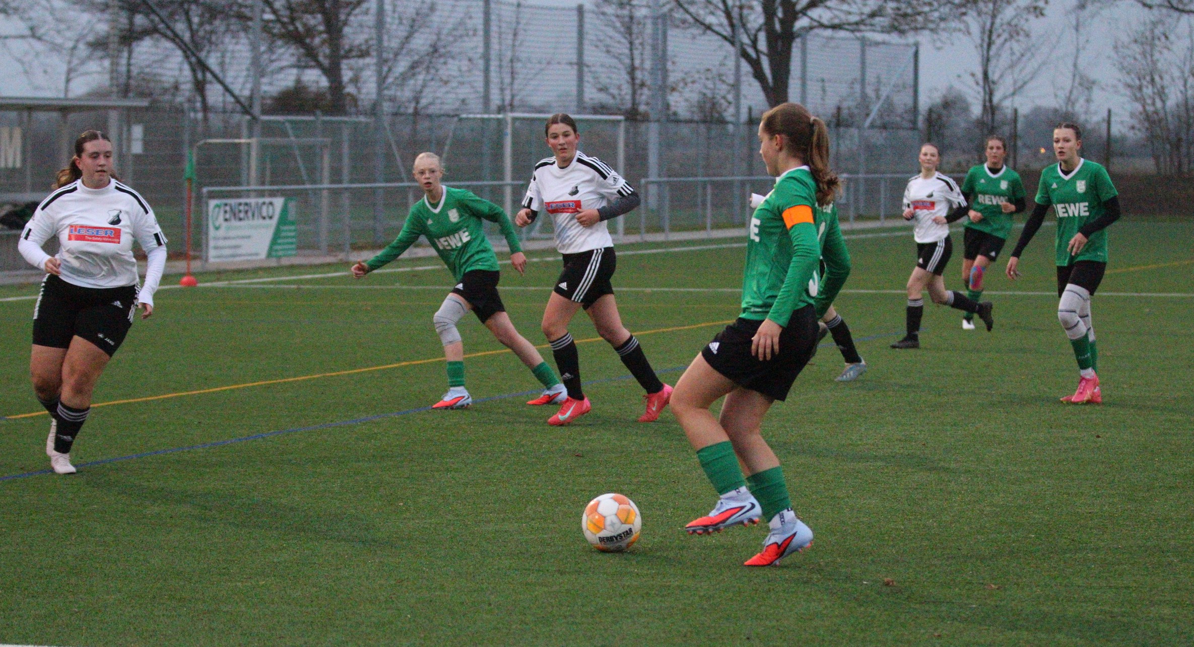 Am Sonntagabend empfingen wir die SG aus Holstein. Wir kamen nach kurzem Abtasten beider Mannschaften gut ins Spiel und konnten uns gute Chancen erspielen, die allerdings alle im Sande verliefen. In der 21. Minute konnte Clara dann zum 0:1 einnetzen. Von da an hatten wir das Spiel gut im Griff und konnten in der 27. und 40. Minute durch Clara und Sara auf 3:0 erhöhen, was auch den Halbzeitstand markierte.