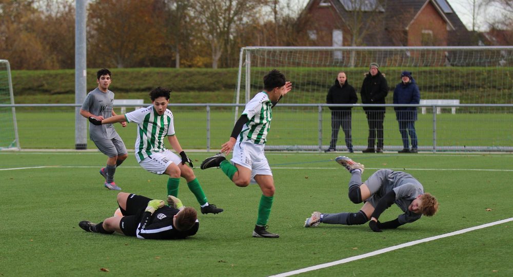 Das Spiel gegen die SG Lohe-Wesseln II begann aber von unserer Seite aus sehr gut, wir konnten den Gegner vom Tor weghalten und selbst nach vorne immer wieder Akzente setzen. Pech hatte unser Milad in der 25. Minute mit einem fulminanten Schuss an die Unterkante der Latte, der Ball sprang leider vor der Torlinie auf. Kurz danach fiel aber etwas überraschend das 0:1, welches bis zur Pause Bestand haben sollte.