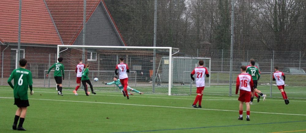Wer sich an diesem Sonntag, dem 22.02.2026 um 10:30 Uhr auf den Fußballplatz traute, der sollte belohnt werden. Zum einen gab es für die Zuschauer, die bei Temperaturen knapp über Null Grad die Spieler und Spielerinnen anfeuerten, heiße Getränke. Zum anderen durften sich beide Mannschaften freuen, die einen, weil sie mit starkem Beginn in Führung gingen und die anderen, weil sie dann doch gewonnen hatten.