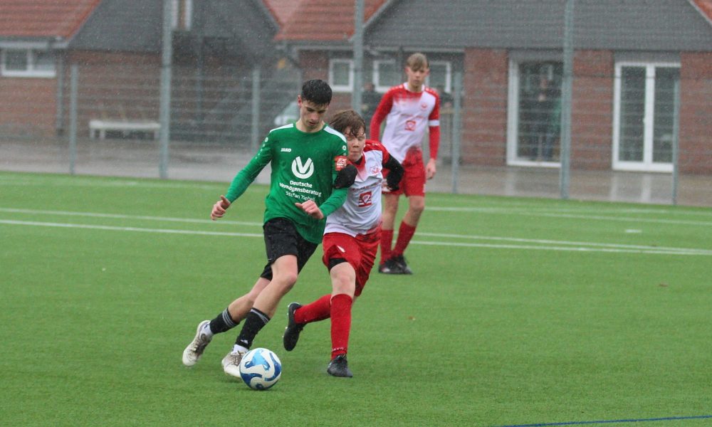Nun aber der Reihe nach. Bei wirklich ekligem Wetter, Regen, Wind und kalt, trafen sich die C1-Junioren und die SG Klevhang zu einem Freundschaftsspiel, um in zwei Wochen besser in die Rückrunde starten zu können. Nach der sehr langen Winterphase mit Temperaturen unter Null Grad, in der wir alle nicht trainieren konnten, sahen die Zuschauer ein tolles Testspiel. Die SG Klevhang ging früh in Führung und unsere C1 musste sich erst einmal sortieren. Der Anschlusstreffer gelang zum Glück noch vor der Pause, so dass es zur Halbzeit 1:1 stand.