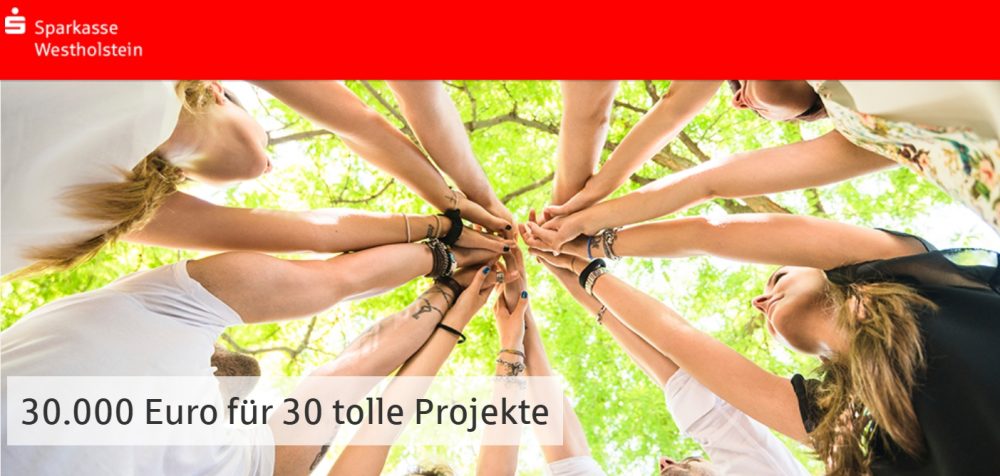 Die Sparkasse Westholstein fördert schon seit einigen Jahren mit dieser jährlich stattfindenden Aktion als gemeinnützig oder mildtätig anerkannte Vereine, Verbände oder Einrichtungen in ihrem Geschäftsgebiet Dithmarschen und Steinburg. Es haben sich 65 Vereine und Institutionen für die 30 x 1.000 Euro beworben. In Dithmarschen und Steinburg werden werden jeweils 15 x 1.000 Euro an die Projekte verteilt, die bis zum 03.03. (12:00 Uhr) die meisten Stimmen gesammelt haben.
