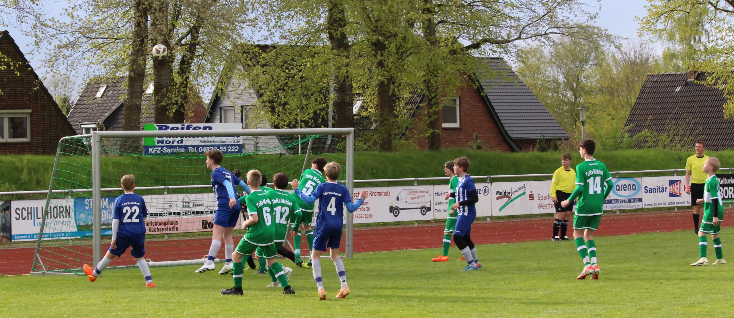 An einem verregneten Sonntagmittag trafen wir, die C2 von TuRa Meldorf, auf die C2 vom Marner TV. Wir hatten uns viel vorgenommen doch das klappte überhaupt nicht, weil unsere Gäste nach einem schnellen Doppelschlag 2:0 in Führung gehen konnten (3. und 5. Minute). Wir konnten aber schnell, mit dem 1:2 in der 8. Minute, den Anschluss herstellen (Simon). Danach waren wir richtig motiviert und drin in der Partie und machten erst durch Simon das 2:2 (11. Minute) und dann sieben Minuten später durch Lee den Führungstreffer. Danach hatten wir gute Chancen zu erhöhen, doch in der 25. Minute verwandelte Marne einen Elfmeter, der aus unserer Sicht durchaus strittig war, zum 3:3. In der 32. Minute schossen unsere Gäste dann das 3:4. Zum Glück machte Simon kurz vor der Halbzeit noch den verdienten Ausgleich (34. Minute). Fazit der ersten Halbzeit: Wir hatten zwischendurch echt gute Phasen, aber auch schlechtere. Also nahmen wir uns in der Kabine vor, an die guten Phasen anzuknüpfen. Und in der 43. Minute war es dann so weit, Simon machte sein 4. Tor am heutigen Tag und wir gingen wieder in Führung. Drei Minuten später konnte Rico dann zum 6:4 treffen. Wir spielten danach noch echt gute Chancen raus um zu erhöhen, ließen diese aber leider liegen. Da unsere Abwehrkette und das defensive Mittelfeld gut gearbeitet haben, ließen wir nicht mehr viel zu und konnten so, nach diesem üblen Start, doch noch mit einem Sieg in die Osterferien gehen. Unser nächstes Spiel findet dann am Donnerstag, den 25. April, um 18:00 Uhr wieder Zuhause am Otto-Nietsch-Weg statt und da geht es gegen die SG Holstein. Über viele Zuschauer wie heute würden wir uns sehr freuen!
